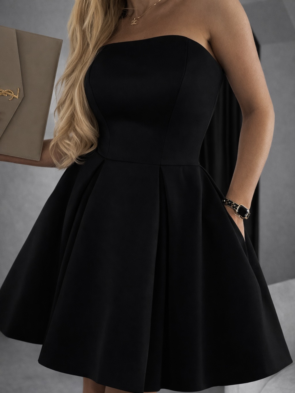 Wyjątkowa czarna sukienka o kobiecym i niezwykle efektownym fasonie. Idealna propozycja na wyjątkowe okazje, gdy chcesz wyglądać stylowo i przyciągać uwagę.