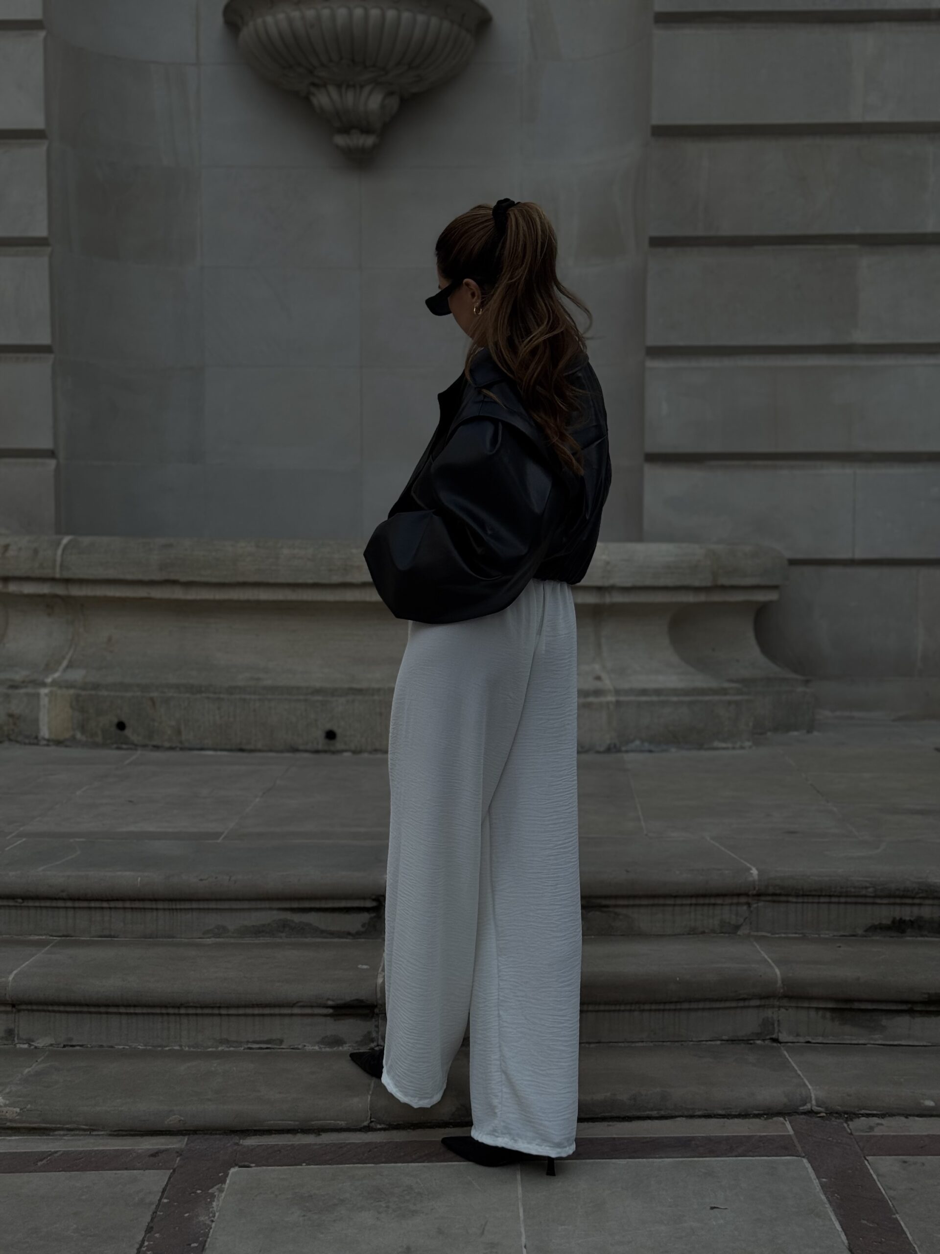 Delikatny, lekko strukturalny materiał dodaje całości subtelnej elegancji i sprawia, że spodnie prezentują się wyjątkowo stylowo. Świetnie komponują się zarówno z koszulą, swetrem, jak i dopasowanym topem, tworząc różnorodne stylizacje na każdą okazję.